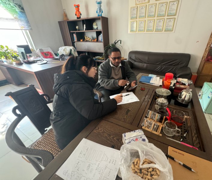 During the factory visit, Mr. Mohamoud showed great interest in the overall machine structure, operating logic, and electrical control system of the plastic PVC pulverizer. He also discussed machine energy consumption, maintenance cycle, and long-term operating cost with our technical engineers. Through face-to-face communication and detailed explanations, the customer gave positive feedback on the pulverizer’s operating stability, processing efficiency, and reasonable structural design.