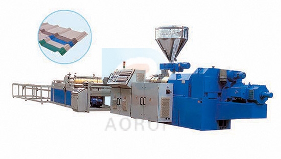 The unit is comprised by a two conical screws extruder SJSZ-65*22 and corresponding wave plate forming machine, tractor and cutting machine, can be used for continuous produce structural season resistance UPVC color block igniting plastic cement wave plate, if replacing the relevant components, the line can produce the chequer plank, possess steady molding performance, tight structure, high automation degree and convenient operation. It is the ideal manufacture device of manufacture companies