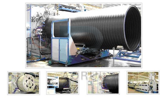 That production line contain profile tube extruder, melting connection extruder, winding forming machine, cutting machine, and related auxiliary device, having great production capacity, high efficiency, stable operating, high pipe circle rigidity, little unit meter weight, fine creep deformation resistant performance, convenience connection and economic installation. The tube has below types: Double wall ripple winding tube, dual wall winding tube, three-wall winding tube etc.